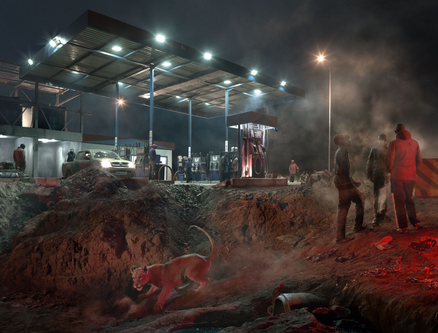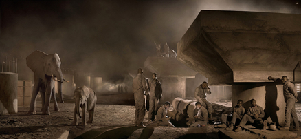 Nick BrandtBridge Construction with Elephants & Workers at Night , 2018archival pigment print -