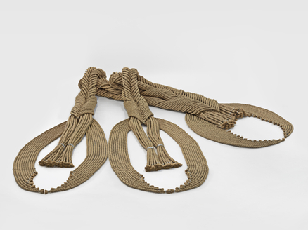Barbara Levittoux-ŚwiderskaThe Black Spiral [Biala spirala], 1985ribbons, natural and synthetic fabric275 x 65 cm
